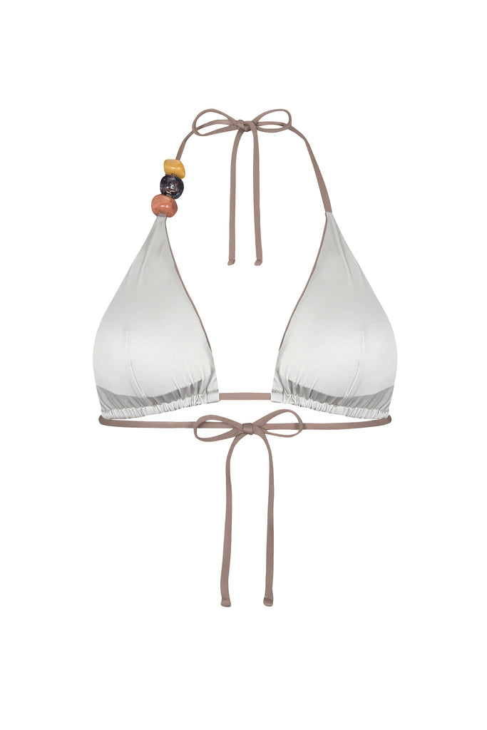 FULLY ADJUSTABLE TRIANGLE TOP WITH SELF-TIE FASTENINGS. GEM STONE DETAILING ON ONE SIDE. REMOVABLE PADDED CUP.