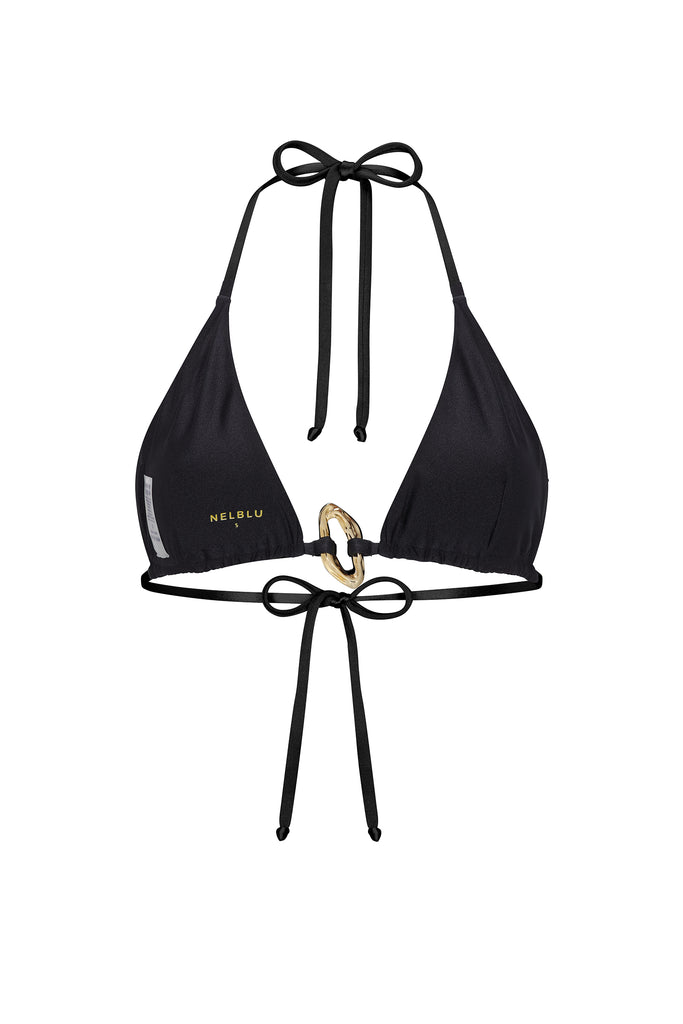 Fully adjustable triangle top with self-tie fastenings, and a center gold embellishment.