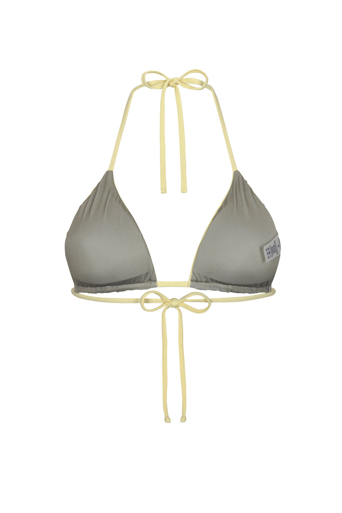 Fully adjustable triangle top with self-tie fastenings and with 3D stitching details. Removable padded cup.
