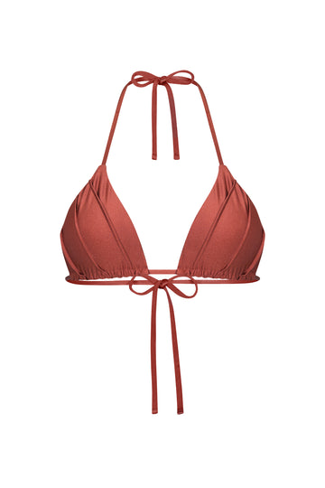 Fully adjustable triangle Top with self-tie fastenings and with 3D stitching details. Removable padded cup.