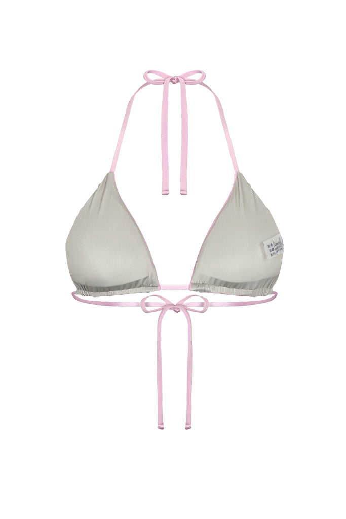 Fully adjustable triangle top with self-tie fastenings and with 3D stitching details. Removable padded cup.