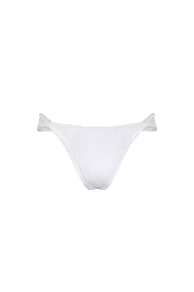 The high-leg bottom features a mix of textures, combining bubble fabric with ribbed velvet detailing at the center and along the thick side panels.